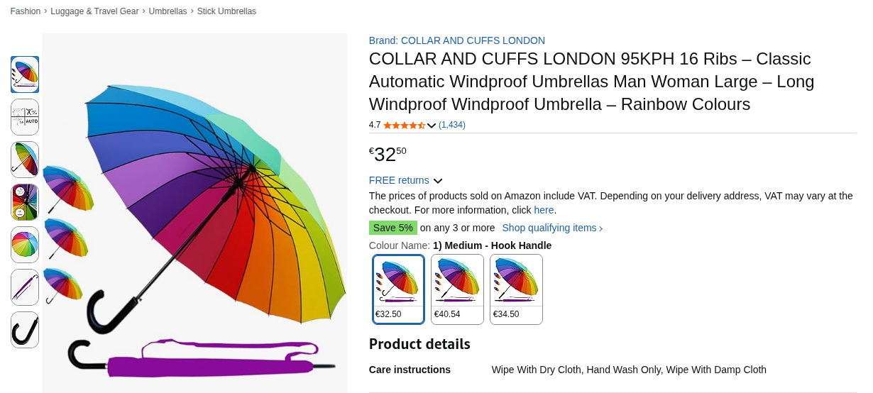 Por último, DDRitter recomienda uno de la marca COLLAR AND CUFFS LONDON, disponible en Amazon. Os dejo una captura, pero paso de poner enlace a EL MAL. No os miento si os digo que llevar un paraguas tan colorido en los días grises lo mola TODO.